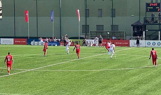 Ampute Milli Takımı, Uluslar Ligi'ndeki son maçında Polonya'yı 3-2 yenerek ikinci oldu.Türkiye Futbol Federasyonu'nun "Türkiye Futbol Oynuyor" projesi kapsamında destek verdiği Bedensel Engelliler Spor Federasyonu bünyesinde bulunan Ampute Milli Takımı, Avrupa Uluslar Ligi A Grubu'ndaki üçüncü ve son maçında ev sahibi Polonya'yı 3-2 mağlup etti. Türkiye, bu sonuçlarla 2024 yılında Fransa'da düzenlenecek Avrupa Şampiyonası'na da katılma hakkı elde etti.Polonya'nın Krakow kentinde düzenlenen Avrupa Uluslar Ligi A Grubu'ndaki ilk maçında İngiltere'ye 1-0 mağlup olan ay-yıldızlılar, ikinci müsabakasında İspanya'yı 4-0 yenmişti. A Grubu'nu 2 galibiyet, 1 yenilgi ile kapatan millier, lider İngiltere'nin ardından ikinci sırayı elde etti. Grupta Polonya üçüncü, İspanya da dördüncü oldu.Ömer Gürsoy, Varşova Büyükelçisi Cengiz Kamil Fırat'a forma takdim ettiTürkiye ile Polonya arasındaki müsabakayı T.C. Varşova Büyükelçisi Cengiz Kamil Fırat da takip etti. Türkiye Futbol Federasyonu Engelliler Koordinasyon Kurulu Başkanı Ömer Gürsoy; Ampute Milli Takım Teknik Direktörü İsmail Temiz ve Kaptan Rahmi Özcan ile birlikte Büyükelçi Fırat'a A Milli Takım forması takdim etti.