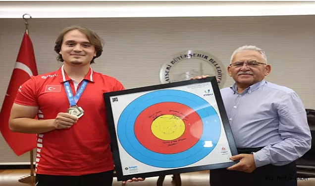 - KAYSERİ Büyükşehir Belediye Başkanı Memduh Büyükkılıç, 2025 Dünya Üniversite Oyunları’nda takım olarak okçulukta dünya şampiyonluğu kazanan Yunus Emre Arslan’ı makamında kabul etti. 2025 Dünya Üniversite Oyunları’nda okçuluk dalında dünya şampiyonu olan Spor A.Ş. sporcusu Yunus Emre Arslan, antrenörü Emre Çömez ile birlikte Büyükşehir Belediye Başkanı Memduh Büyükkılıç’ı makamında ziyaret etti. Takımın bir parçası olan Yunus Emre Arslan, kazandığı zaferin ardından Başkan Büyükkılıç’a, Hindistan’a karşı kazandığı finalde attığı okların hedef kağıdını hediye etti. Başkan Büyükkılıç, “Bir yerde olmak değil, orada kalmak ve sürdürülebilir başarılar elde etmek önemlidir. İşinizi sıkı tutun ve sizden Mete Gazoz’ların sayısının artmasını bekliyoruz" dedi.Yunus Emre Arslan ise olimpiyatlarda da Türkiye’yi gururlandırmak için elinden geleni yapacağına söz vererek, desteklerinden dolayı Başkan Büyükkılıç’a teşekkür etti