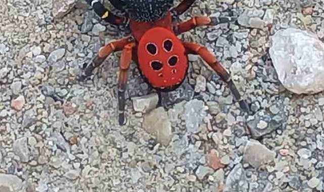 Daha önce Muğla ve Denizli illerinde görülen zehirli uğur böceği örümceği şimdide Manisa'nın Turgutlu ilçesinde görüldü.