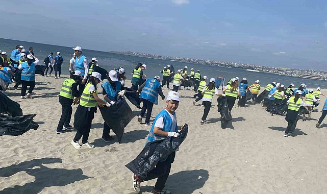 Büyükçekmece Belediyesi koordinesiyle Büyükçekmece Sahili'nde bir araya gelen ekseriyeetini ilk okul öğrencilerinin oluşturduğu minikler, plajdaki çöpleri temizleyerek, büyüklerine temiz çevre mesajı verdi.