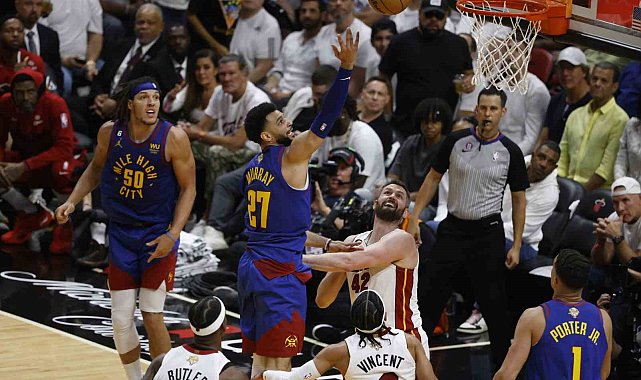 NBA finalinde Denver Nuggets, deplasmanda karşılaştığı Miami Heat'i 109-94'lük skorla mağlup ederek seride 2-1 öne geçti.NBA finalinde Miami Heat ile Denver Nuggets, Kaseya Center'da karşı karşıya geldi. Denver, parkeden 109-94'lük skorla galip ayrıldı ve seride 2-1 öne geçti. Denver'da Jamal Murray ile Nikola Jokic, triple-double performanslarıyla galibiyeti getiren isimler oldu. Murry 34 sayı, 10 ribaund ve 10 asist, Jokic de 32 sayı, 21 ribaund ve 10 asist ile mücadele etti. Miami'de ise Jimmy Butler 28 sayı, 4 asist ve Bam Adebayo da 22 sayı, 17 ribaundluk performans sergilese de mağlubiyeti önleyemedi.