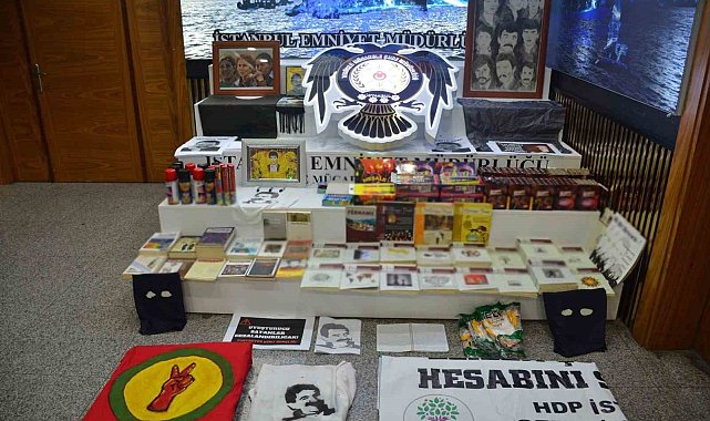 İstanbul'da bölücü terör örgütü PKK'nın gençlik yapılanması DGH üyelerine yönelik yürütülen soruşturma çerçevesinde, Halkların Demokratik Partisi (HDP) Şişli Okmeydanı Temsilcilik binasının deposuna yapılan operasyonda, örgüt elebaşı Abdullah Öcalan'ın afiş ve posterlerinin yanı sıra, korsan gösteri ve yürüyüşlerde kullanılabileceği değerlendirilen 8 eldiven, 10 sprey, 2 yüz maskesi, 3 yelek, 85 meşale, 10 havai fişek rampası ve 67 torpil