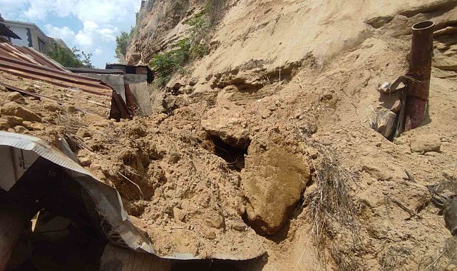 Heyelan iki komşuya korkulu dolu anlar yaşattı