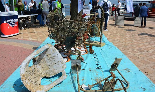 Kocaeli'nde 8 Haziran Marmara Denizi Günü çerçevesinde Değirmendere sahilinde hayalet ağlar çıkarıldı. 9 günde 5 ton atığın denizden çıkarıldığı çalışmalarda, denizden çıkan garip eşyalar da vatandaşlara gösterilirken market arabası şaşkınlık uyandırdı.Marmara Denizi'nin karşı karşıya olduğu kirlilik tehdidi ve müsilaj krizinin sonucunda Çevre, Şehircilik ve İklim Değişikliği Bakanlığı'nın öncülüğünde yerel yönetimlerden sivil toplum kuruluşlarına, bilim insanlarından özel sektöre kadar çok paydaşlı Marmara Denizi Eylem Planı Haziran 2021'de ilan edildi. Eylem planı içerisinde de Marmara Denizi'ni sağlığına kavuşturma misyonuyla Marmara Denizi Bütünleşik Stratejik Planı'nın oluşturulması kararlaştırıldı. Bu çerçevede farkındalık oluşturmak amacıyla 8 Haziran Marmara Denizi Günü ilan edildi. Bu çerçevede Marmara Belediyeler Birliği, Kocaeli Valiliği, Kocaeli Büyükşehir Belediyesi, Gölcük Belediyesi, Çevre, Şehircilik ve İklim Değişikliği İl Müdürlüğü, Kocaeli İl Tarım ve Orman Müdürlüğü ile Balıkçılık ve Orman Müdürlüğü ortaklığında Gölcük Değirmendere Vapur İskelesi'nde biyoçeşitlilik temasının vurgulandığı program düzenlendi. Yapılan çalışmalarda 9 günde 5 ton atık çıkarıldığı belirtildi. Çalışmalar yapılırken denizden çıkarılan bazı ilginç eşyalar da sergilendi. Özellikle denizden çıkarılan market arabasını görenler şaşkınlık yaşadı. Etkinlik, denizden toplanan hayalet ağların çıkarılmasıyla son buldu."Marmara'nın farklı noktalarında bu çalışmalar gerçekleştiriliyor"Marmara Denizi Günü ve yapılan çalışmalarla ilgili bilgiler veren Marmara Belediyeler Birliği ve Kocaeli Büyükşehir Belediye Başkanı Tahir Büyükakın, "Marmara Denizi günü aslında müsilajla ilgili çalışmalar çerçevesinde ilan edilen eylem başlıkları takip edilirken ortaya atılan fikirlerden biriydi. Marmara Denizi günü ilan edelim, o gün bir yandan farkındalık çalışmaları gerçekleştirelim, diğer yandan da eylem başlıklarına tekabül eden konularla ilgili birtakım etkinlikler gerçekleştirilelim denmişti. O çerçevede yürütülen bir çalışma. Şu anda Marmara Belediyeler Birliği olarak Marmara'nın tamamında farklı farklı noktalarda bu çalışmalar gerçekleştiriliyor. Belediyelerimizle ve ilgili kamu kurumlarıyla koordine olduk. Biz burada, onlar kendi bulundukları bölgelerde denizden hayalet ağları çıkartıyorlar. Hayalet ağların denizden uzaklaştırılması konusu, eylem planında Tarım Bakanlığı'nın görev alanına giriyordu. Tarım Bakanlığımız, İl Tarım Müdürlüğümüz aracılığıyla şu anda Marmara'nın tamamında bu faaliyete öncülük ediyor, belediyelerimizle birlikte. Eylem başlığına tekabül eden diğer alt başlıklarda da gerek farkındalık çalışmaları gerekse diğer etkinlikler hayata geçiriliyor. 5 Haziran Dünya Çevre Günü'nde başlatılan etkinlikler bugüne kadar devam etti. Yaklaşık yüz kadar etkinlik, bazıları sempozyum, bazıları farkındalık çalışmaları, bazıları da burada gördüğünüz gibi eylem başlıklarına dönük çalışmalar olarak devam ediyor" diye konuştu."Denizden çıkan garip şeyler görmüştük, market arabasında mantık aramamak gerekiyor"Denizden çıkan bazı eşyaların bir mantığı olduğunu fakat market arabası çıkmasında mantık aranmaması gerektiğini vurgulayan Başkan Büyükakın, "Şimdiye kadar denizden çıkan garip şeyler görmüştük. Mesela ayakkabı çıkıyor, bir mantığı da var. Ayakkabıyı denize düşürmüş olabilir insanlar. Teknelerle denize açıldıklarında ayakkabıları denize düşmüştür diyorsunuz. Ya da lastik çıkıyor mesela. Büyük traktör lastikleri, vapur iskelelerinde lastikler bağlı. Onlar yanaşan tekneleri muhafaza etmek ya da iskeleyi muhafaza etmek için oraya takıldı. Zaman içinde onu bağlayan halat kopmuştur, lastik kopmuştur. Bir mantık yürütüyorsunuz. Fakat az önce şurada baktım mesela market arabası var, market sepeti var. Bunun artık şöyle yorumlanması da garip geliyor, 'Adam marketten alışveriş yaptı. Arabayla vapur iskelesine kadar taşıyordu, iskelede denize düşürdü' falan gibi bir mantık belki aranabilir ama mantık aramamak gerekiyor. Mantık arattırmasınlar. Marmara'ya sahip çıksınlar demek istiyorum. Bu deniz hepimizin, Marmara hepimizin. Zaten bu hashtag adı altında bir faaliyetle başlatılmıştı. Biz sadece burada temizlik yaptığımızda, sadece burada evsel atıkları tamamen ileri biyolojik arıtmadan geçirip denize bıraktığımızda Marmara'daki bütünleşik problem çözülmüş olmuyor. Diğer taraftan bu yapılmadığı takdirde o zaman denizdeki kirlilik devam ediyor. Marmara'yı koruma çalışmaları beraber yürütülmesi gereken çalışmalar. Birilerinin yapıp diğerinin yapmadığı durumda mesele hallolmuyor maalesef. Onun için Marmara'nın tamamında koordinasyon halinde çalışma konusunda da hem Marmara Belediyeler Birliği hem Çevre Bakanlığı büyük bir koordinasyon sağlamak için de gayret gösteriyor" ifadelerini kullandı.
