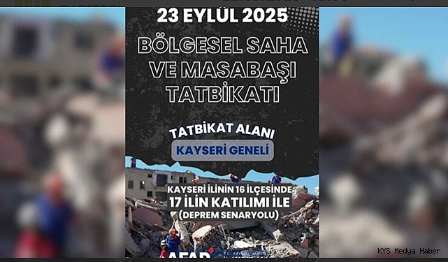 Kayseri Valiliği, Türkiye Afet Müdahale Planı kapsamında 6,4 büyüklüğünde deprem senaryosu ile 24 saat sürecek tatbikat düzenleyeceğini duyurdu. Tatbikata 4 bin 268 personel, dronlar, mobil araçlar ve gönüllüler katılacak.
