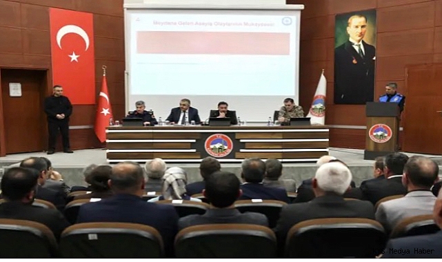 Kayseri Valiliği toplantı salonunda düzenlenen toplantıya Vali Gökmen Çiçek, İl Jandarma Komutanı Tuğgeneral Bilgihan Yeşilyurt, İl Emniyet Müdürü Atanur Aydın, Abdullah Gül Üniversitesi Rektörü Prof. Dr. Cengiz Yılmaz, Nuh Naci Yazgan Üniversitesi Rektörü Prof. Dr. Ahmet Fazıl Özsoylu, Vali Yardımcısı Abdullah Kalkan, Büyükşehir Belediyesi Genel Sekreteri Hüseyin Beyhan, ilçe kaymakamları, ilçe belediye başkanları, kamu kurum ve kuruluşlarının temsilcileri, sivil toplum kuruluşu temsilcileri ve mahalle muhtarları katıldı.Kentin genel güvenliğine ilişkin sorunları yerel düzeyde tespit edip hizmetleri geliştirmek amacıyla gerçekleştirilen toplantıda; asayiş, trafik ve okul güvenliği başta olmak üzere genel güvenlik konuları ele alındı. Toplantının açılışında konuşan Vali Gökmen Çiçek, “İlimiz genelinde yürüttüğümüz kararlı ve etkin çalışmalar neticesinde asayiş ve güvenlik alanında önemli başarılar elde etmiş bulunuyoruz. Vatandaşlarımızın huzur ve güvenliğini temin etmek adına çalışmalarımızı aynı azim ve kararlılıkla sürdüreceğiz” dedi. Toplantı, İl Emniyet Müdürlüğü ve İl Jandarma Komutanlığı tarafından gerçekleştirilen sunumların ardından sona erdi