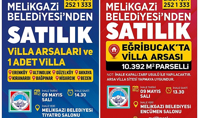 Melikgazi Belediye Başkanı Dr. Mustafa Palancıoğlu, mülkiyeti belediyeye ait olan Eğribucak Mahallesi'nde bulunan villa arsası ve Erenköy, Altınoluk, Güzelköy, Akkaya, Kıranardı, Bağpınar, Hisarcık, Becen Mahallesinde ihale ile villa arsası ve 1 adet villanın satışının yapılacağını söyledi.