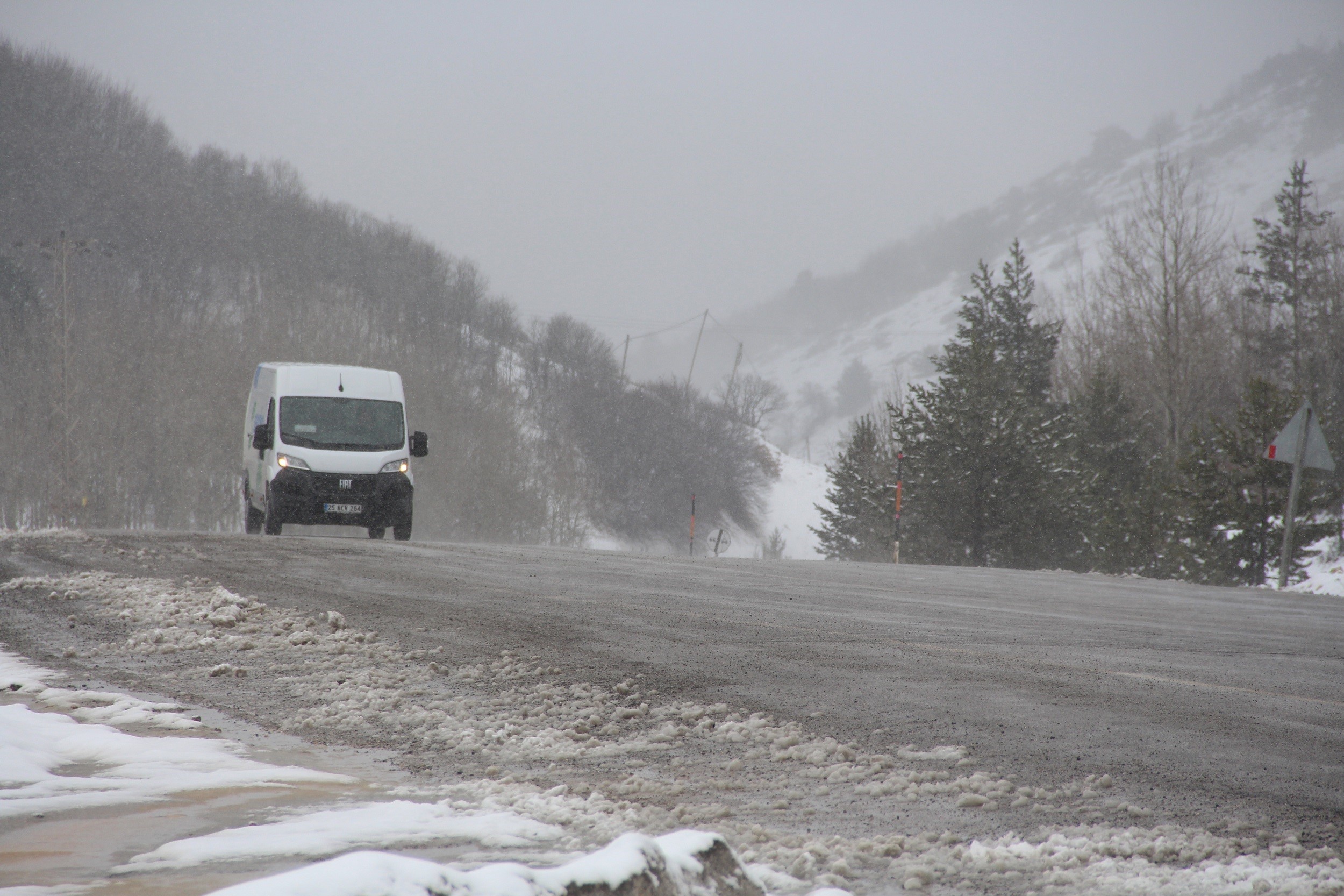 Sivas’ta Zara ve Suşehri ilçelerini birbirine bağlayan Geminbeli geçidinde kar yağışı etkili oluyor.