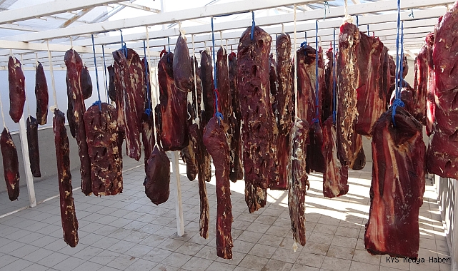 Pastırma ve sucuğu ile meşhur Kayseri’de, et, tuz ve çemen ile yapılan pastırma üretimine aralıksız devam ediliyor. Ekim ayının sonundan kasım ayının ortasına kadar süren güneşli, hava sıcaklığının mevsime göre yüksek olduğu günler için kullanılan “pastırma yazı”nda fabrikaların damlarına kurutulan pastırmalar, zorlu yapım aşamasının ardından sofralarda yerini alıyor.