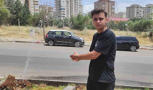 Kahramanmaraş'ta refüjde patlayan boru onarılmayınca temiz içme suyu boş yere aktı.