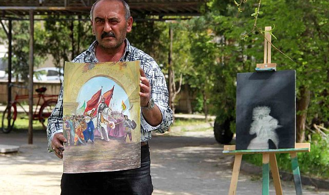Sivas'ta ayakkabı boyacılığı yapan Murat Ünser, yaptığı resimlerle ünlü ressamlara taş çıkartıyor.