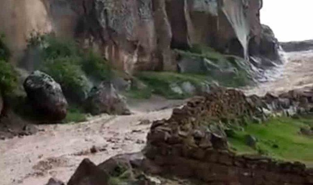 Kayseri'nin Tomarza ilçesinde etkili olan sağanak yağış bazı bölgelerde sele neden oldu.