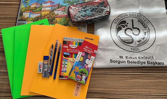 Sorgun Belediyesi okulların açılması ile birlikte bin 300 öğrenciye kırtasiye malzemesi desteğinde bulundu.