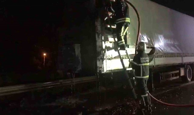 TEM Otoyolu Kocaeli geçişinde alev alev yanan tırın söndürülme çalışması yapılırken trafikte geçişlere izin verilmedi. Yanan tır adeta TEM Otoyolu geçişlerini durma noktasına getirdi.Yangın, Kartepe ilçesi TEM Otoyolu Tepetarla geçişi Ankara istikametinde meydana geldi. Edinilen bilgiye göre, M.Ş.A. idaresindeki 73 AAF 784 kupa plakalı Mercedes marka tırdan seyir halindeyken dumanlar yükselmeye başladı. Tırı sağa çeken sürücü, aracından indikten sonra gördüğü manzarayla şoke oldu. Tır, alev alev yanmaya başladı. Yangın 112 Acil Çağrı Merkezi'ne bildirildi. İhbar üzerine itfaiye ve polis ekipleri bölgeye sevk edildi. İtfaiye ekipleri müdahaleye başlarken polis ekipleri de yolda güvenliği sağlamak adına bir süreliğine trafiği durdurdu. Araçtaki yangının söndürülmesinin ardından trafikte geçişlere yeniden izin verildi. Yanan tır ise kullanılmaz hale geldi.Yangınla ilgili inceleme başlatıldı.