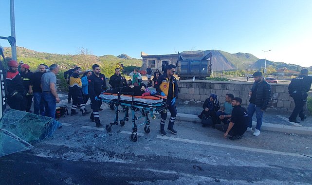 Tırla çarpışan işçi servisi yan yattı, çok sayıda kişi yaralandı