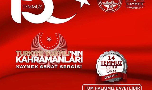 Kayseri Büyükşehir Belediye Başkanı Dr. Memduh Büyükkılıç, 15 Temmuz Demokrasi ve Milli Birlik Günü etkinlikleri çerçevesinde 'Türkiye Yüzyılı'nın Kahramanları KAYMEK Sanat Sergisi' adlı çok özel bir program düzenleyeceklerini duyurdu.