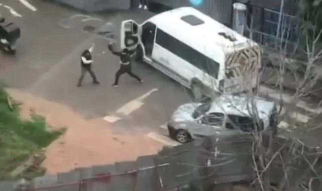 Tuzla'da motosiklet sürücüsü ile servis sürücüsü arasında kavga çıktı. Motosiklet kaskı ile tornavidanın kullanıldığı kavga cep telefonu kamerasına yansıdı.