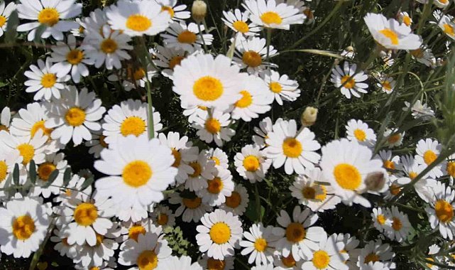 Bolu'nun tarih dolu ilçesi Mudurnu'da son yağışların ardından güneşi gören çiçekler, tarlalarda ve yol kenarlarında adeta renk cümbüşü oluşturdu.Bolu'nun tarih dolu ilçesi Mudurnu'da son yağışların ardından bahar bir kez daha yüzünü gösterdi. Özellikle gelincikler ve papatyalar, yol kenarlarını adeta birer tablo gibi süsledi. Renkleriyle doğaya enerji katan çiçekler, görenleri kendine hayran bıraktı. Mudurnu'nun baharı yaşayan alanları fotoğraf tutkunlarına da güzel kareler sundu.Çiçek manzarasına hayran kalan vatandaşlardan İsmail Adıgüzel isimli vatandaş, "Uzun süre yağan yağmurların ardından güneşin açmasıyla birlikte bahar yüzünü gösterdi. Tarlalarda rengarenk çiçekler açtı. Yeni bir cıvıltı, sanki hayat yeniden başladı" dedi.