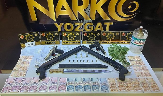Yozgat merkezli 4 ilde özel harekat polisi destekli düzenlenen uyuşturucu operasyonunda 23 kişi gözaltına alındı.Yozgat İl Emniyet Müdürlüğü, Narkotik Suçlarla Mücadele ekipleri tarafından "Kökünü Kurutma Operasyonu" düzenlendi. Yozgat merkezli Yerköy ve Sorgun ilçeleri ile Ankara, Kayseri ve Kırşehir illerinde, 40 ekip 160 personelin katılımıyla eş zamanlı gerçekleştirilen operasyonda uyuşturucu madde ticareti yapan 12, uyuşturucu madde kullanan 11 olmak üzere toplam 23 şahıs gözaltına alındı.Şüpheli şahısların ikametlerinde yapılan aramalarda; 92 adet sentetik ecza, 43 kök Hint keneviri, 17.45 gram esrar, 16.63 gram metamfetamin, 3.54 gram bonzai, 2 adet ruhsatsız av tüfeği, 2 adet ruhsatsız tabanca, 17 adet fişek, 1 adet pala, 2 bin 910 TL uyuşturucu madde ticaretinden elde edilen para ve 2 adet uyuşturucu madde kullanma aparatı ele geçirildi. Gözaltına alınan 23 şüpheli şahıs hakkında gerekli yasal işlem başlatıldı.